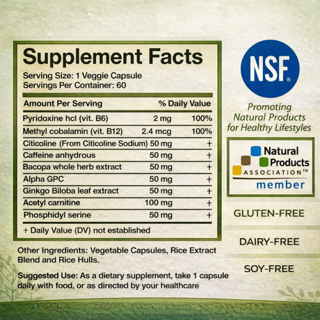 Sale price $29.95 USD Regular price $35.49Unit price Alpha Brain, 454 mg 60 Veg Capsules, 60-Day Supply