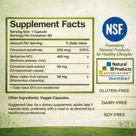 Berberine with Chromium Picolinate, 60 Capsules, 60-Day Supply